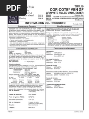 Cor cote ven ff flake filled vinyl ester novolac part a b88 25 series part b b88r99 red chp cumene hydrogen peroxide catalyst part b b88v99 clear chp cumene.